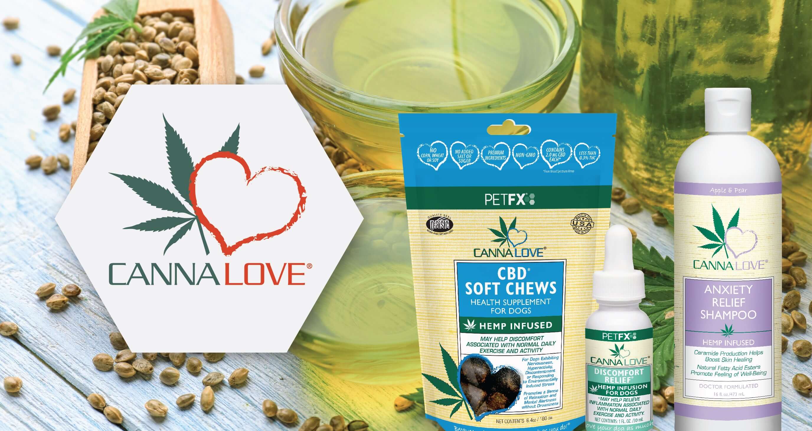 Our hemp infused canine products boost your dog's wellness, making them feel better inside and out.