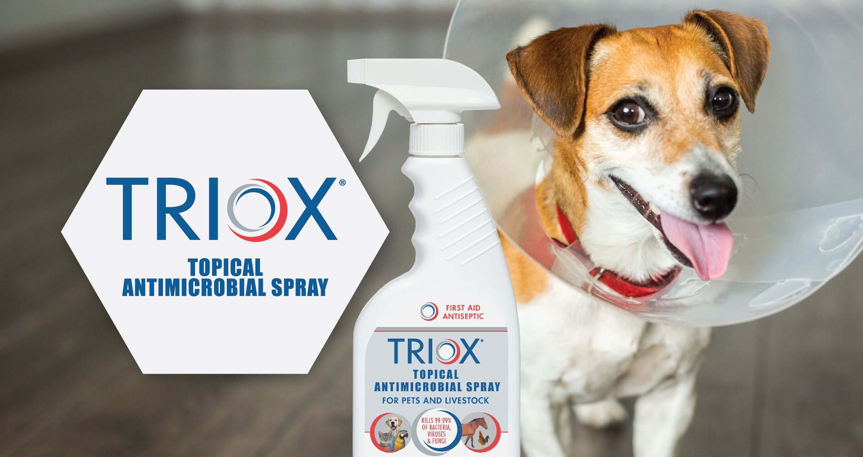 Treat your pets and livestock with the best first aid antiseptic. Triox® kills 99.99% of bacteria, viruses, & fungi.