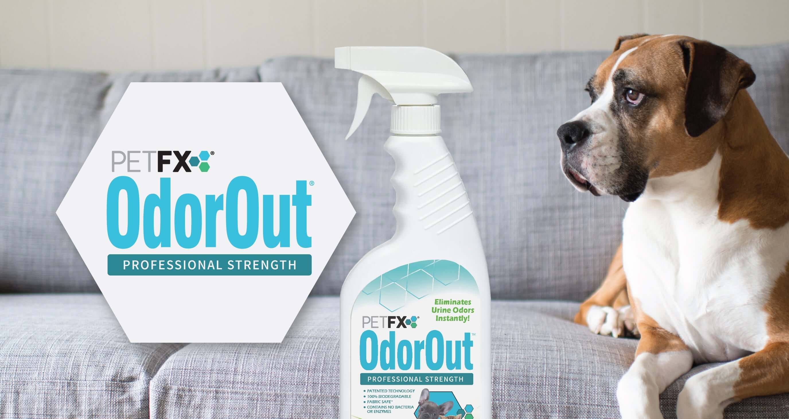 Eliminate pet odors instantly with OdorOut®. Biodegradable, fabric safe, contains no bacteria or enzymes.